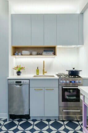 Heather went with LG’s Viatera quartz countertop in Cirrus for her Upper West Side kitchen.