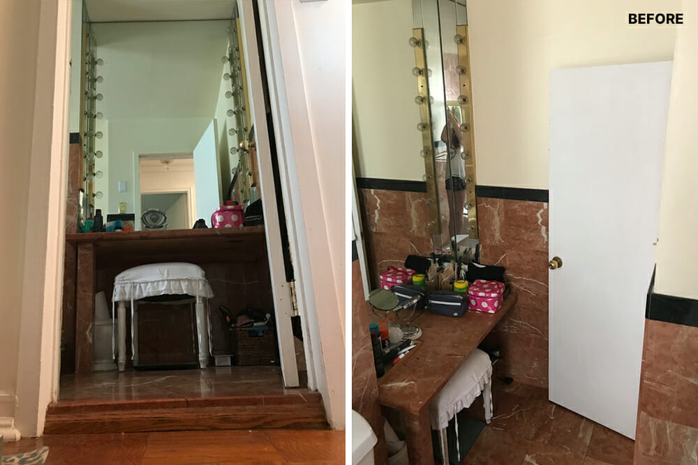 Before: Give a Gramercy bathroom a much-needed facelift for storage, style