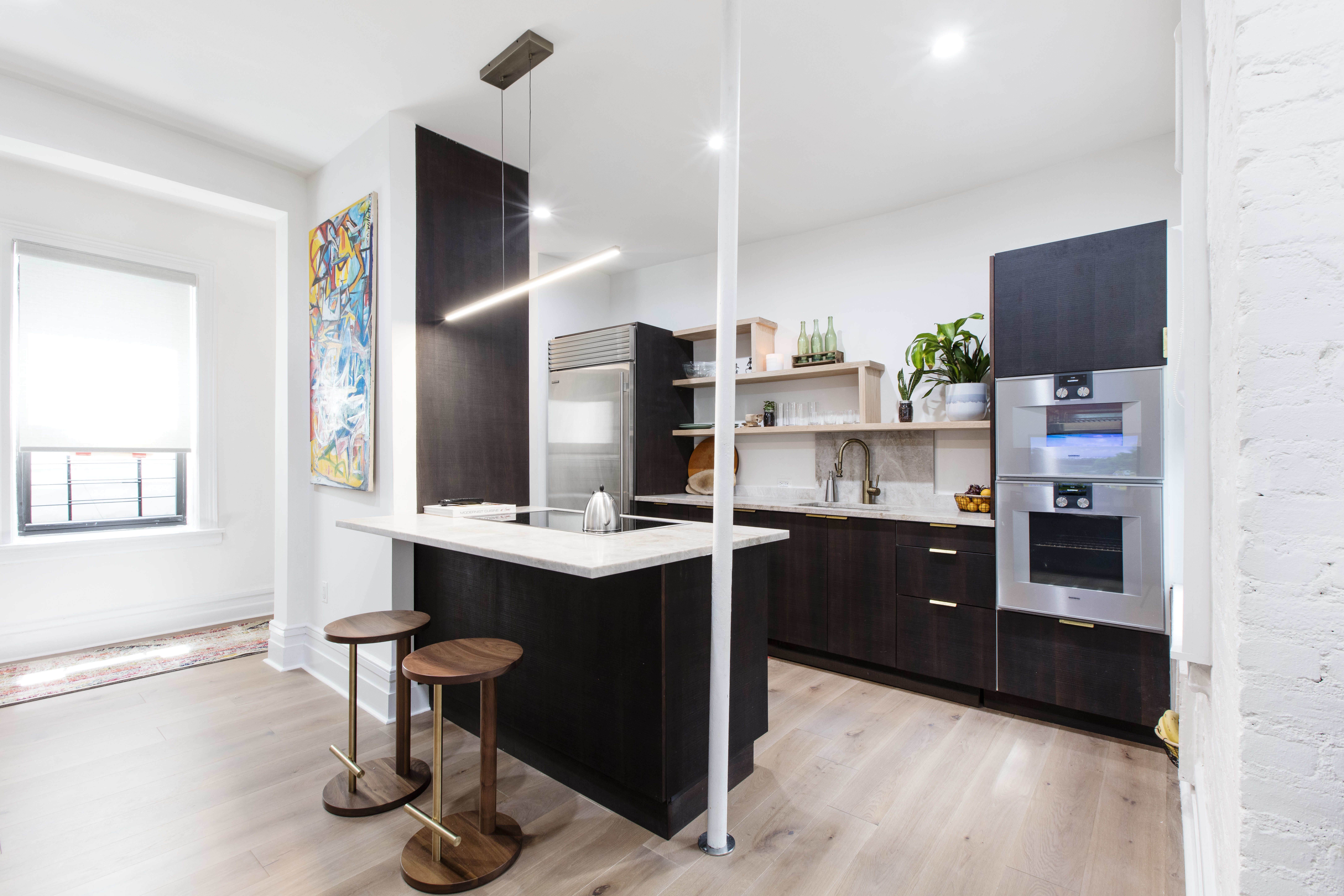 Take a look at how this triplex apartment renovation reimagined a small kitchen and improved its baths.